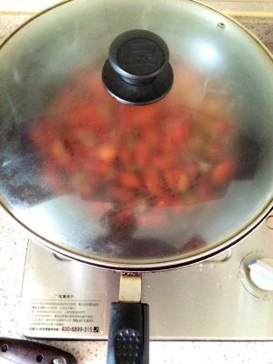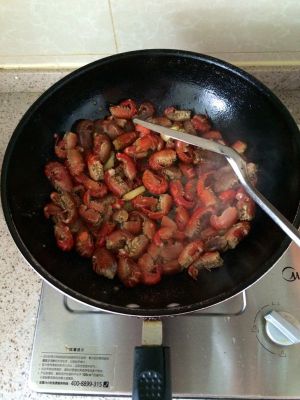 调味后,转中火烧15分钟左右即可。出锅前三、四分钟记得放青椒,待汤汁炒干出锅即可;