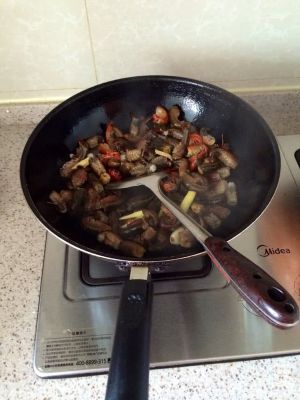 接着下花椒麻椒,辣椒,豆瓣酱,然后火锅底料炒香。注意:这过程放小火,火大辣椒会黑