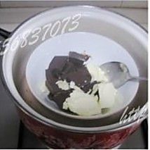 巧克力和黄油放入盆里。