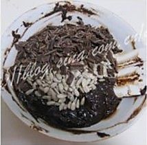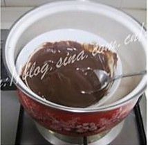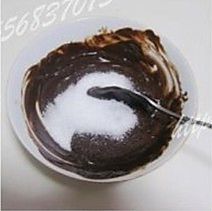 在溶化的巧克力液里加入细砂糖,并搅拌均匀。冷却