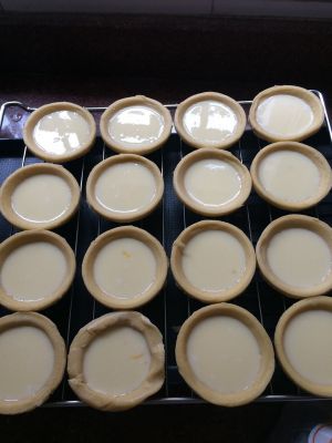 每个蛋挞皮倒入三分之二的蛋挞水,倒的多了会溢出去