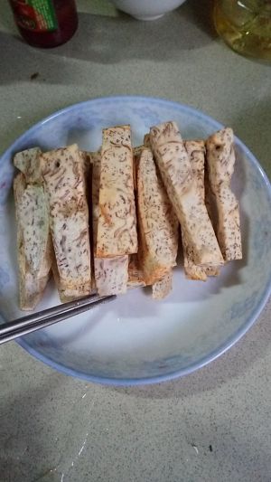 芋头切条放入锅中炸