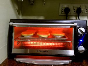 进烤箱中层,200度,30分钟,最后10分钟要观察蛋挞,可以适当调到180度,以免烤太焦