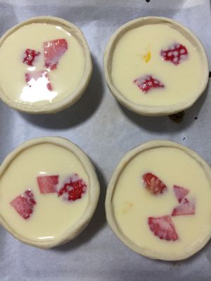 倒入蛋液,九分满。放入预热好的烤箱,220度20分钟。