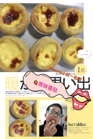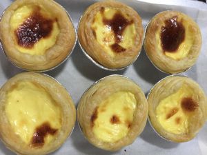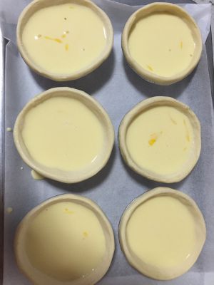 烤箱170度预热5分钟左右,放入蛋挞,170度上下火烤25分钟就大功告成啦!