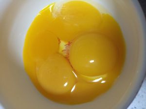 鸡蛋去壳去蛋清,将蛋黄打散成液体状