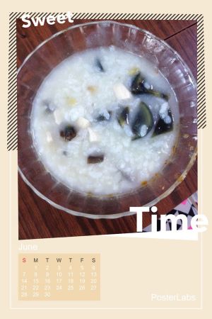 粥煮好了盛出,再在粥上撒点葱叶,主要是为了好看,完成!!