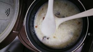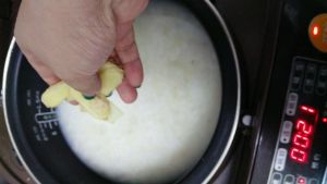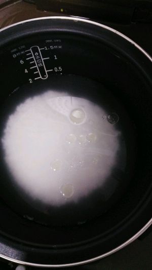 米洗干净后倒入电饭煲放清水,水量比平时煮粥时略多一些,然后放入葱白,色拉油,浸泡半小时或一小时,这样煮出来的粥口感软糯
