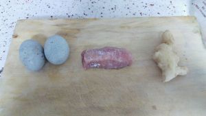 准备好皮蛋,里脊肉,米,小葱,姜,待用