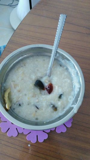 由于时间紧,来不急泡米了。这里告诉大家一个小巧门,可以把淘好的米放入冰箱冷冻半小时,然后下锅就可以熬出浓稠的粥底了。
