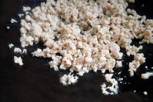 起一锅倒入步骤1腌制好的肉末翻炒到5成熟盛起备用;