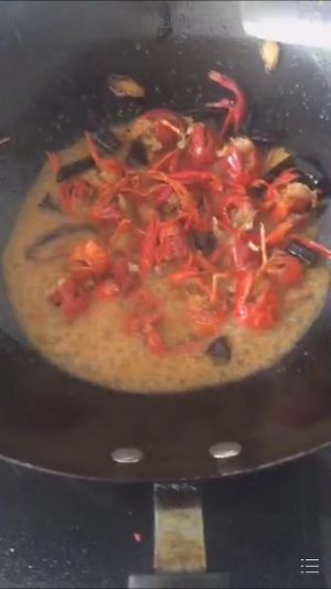 油下锅烧热,放花椒,干辣椒,姜蒜煸香。放入小龙虾翻炒三分钟