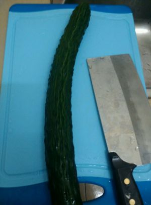 黄瓜一条洗净用刀拍碎