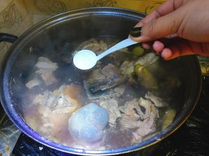 根据个人口味加入盐,继续炖煮至完全熟透,加入鸡精。个人认为整个炖煮时间不要少于2小时,肉会很软烂入味!