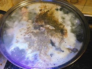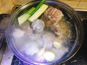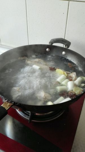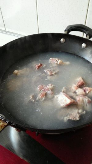 羊蝎子凉水下锅后大火煮开,把血沫完全盛出来