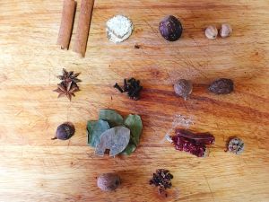 香料:桂皮,香叶,大料,花椒,丁香,草果,肉蔻,白芷,白豆蔻,香果,草寇,肉豆蔻,干辣椒