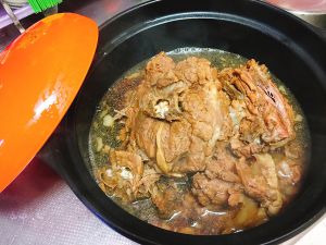 盖上砂锅盖,大火煮开,小火慢炖1--1.5小时