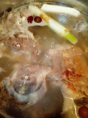 锅里重新放水,放入葱姜蒜花椒八角,放入羊蝎子