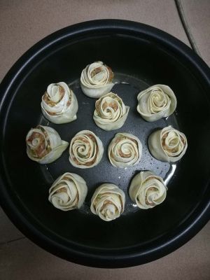 用剪刀剪三下 很漂亮吧 放蒸笼里蒸二十分钟 配好蘸水 美观又好吃