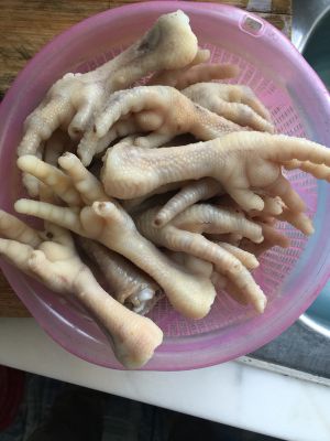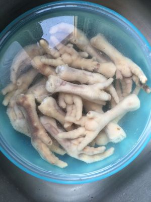 鸡爪买回来,用剪刀去掉前面的指甲,用冷水冲洗