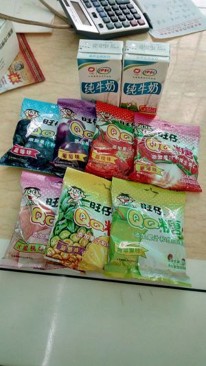 准备好几种口味的QQ糖和牛奶