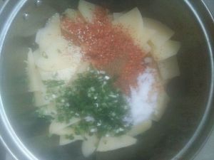 土豆切片,我这个是面土豆所以切的厚了点儿
