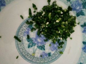 放入辣椒 孜然 盐 鸡精 葱花 热好的油均匀浇上去,