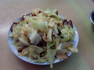 包菜炒得略变色,加少许生抽,翻炒至熟即可。