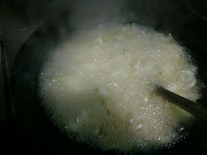 待肉炒熟后放入圆白菜,炒蔫了后放入圆白菜炒蔫后放入醋,生抽和盐