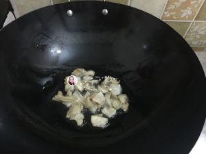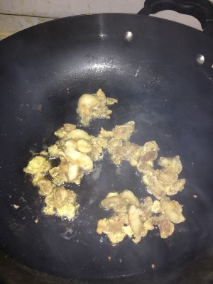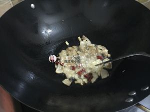 炒到这样,在往里面加一小勺盐,味精和一丢丢胡椒,糖一小撮。酱油一点点,太多炒出的颜色不好看