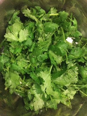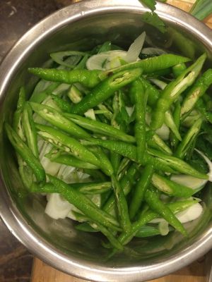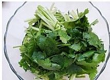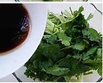 把黄瓜丝和尖椒丝用盐腌制一下,再加入葱丝、香菜段,倒入调好的汁,拌匀即可。