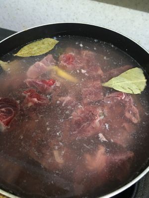 牛肉过热水,洗去浮末。