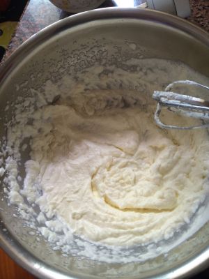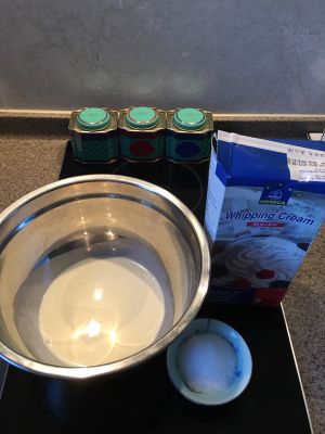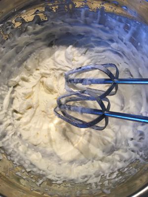 淡奶油加糖打到奶油不动,足够硬的状态。