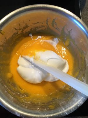 加点打发好的蛋清倒入蛋黄材料里炒菜式拌匀