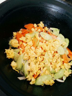 然后再放鸡蛋,黄瓜,木耳,萝卜