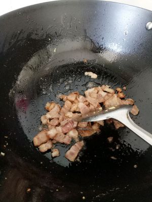不用刷锅,放入切好的白肉,小火让白肉出油。