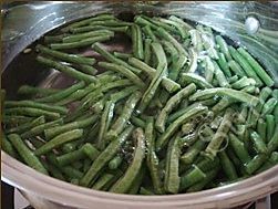 锅中水沸后,放入切好的豇豆,焯煮三四分钟;
