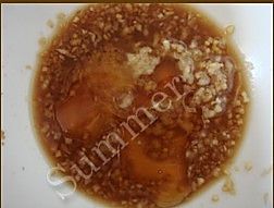 姜切末加醋、蒜泥、盐、香油混合均匀制成调味汁;