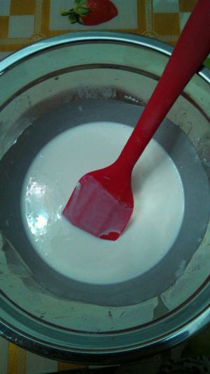 1 打好奶油,放在冰箱里,备用 2 把糯米粉 栗粉 白砂糖 鲜牛奶 放在容器中搅拌,无颗粒即可