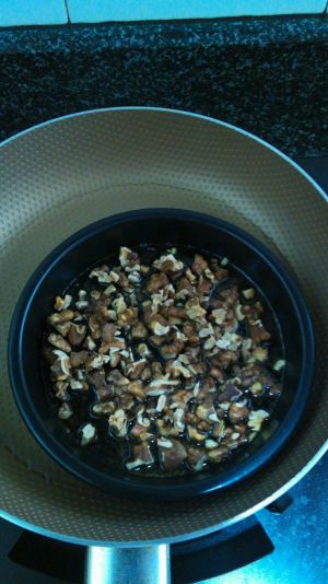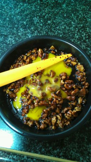 放入烤过的核桃拌匀(核桃提前烘烤,150度8分钟)