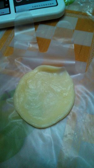 用擀面仗擀扁揉光滑后放保鲜膜冷藏30分钟,冷藏好的面团分小份