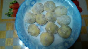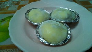小贴士: 在打奶油的时候可以下面放一盆冰水那样会更容易打发 如果粘手的话手上放多点糕粉那样就不会粘手了。包大的雪媚娘像楼楼怎么大才8个而已吧!楼楼包了7个大的 最后包了四个小小的