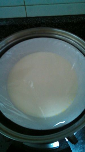奶糊用保鲜膜覆盖,水沸后入锅隔水蒸15至20分钟。