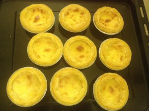 烤箱提前两分钟预热 下火230度 烤10分钟 再上下火烤12分钟 出来的蛋挞就成这样了