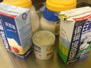 蛋挞皮是买的成品,淡奶油与牛奶混合,加入细砂糖与炼乳,加热搅拌至细砂糖溶解。