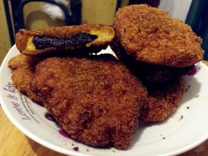 揉出一个小团压扁,两面粘上面包糠。
