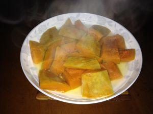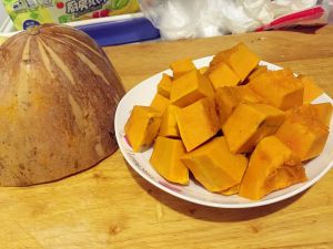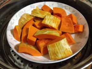 南瓜去皮去瓤切块隔水蒸。