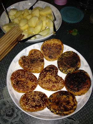 和好面,揪出合适的小面团,在掌心揉圆,压扁,一个可爱小巧的南瓜饼就出现了……