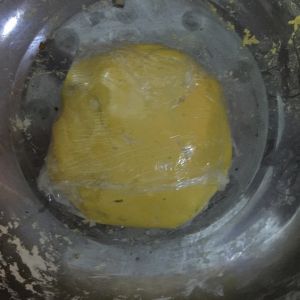 南瓜切片蒸熟放入白糖,和糯米粉揉成面团