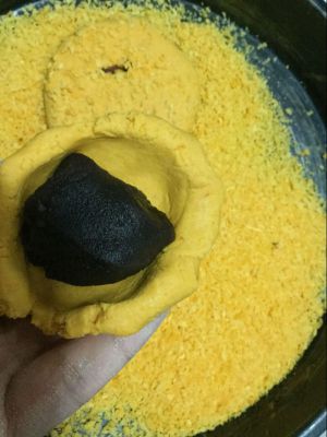 揉捏好,拍平,但是千万馅不要露出来